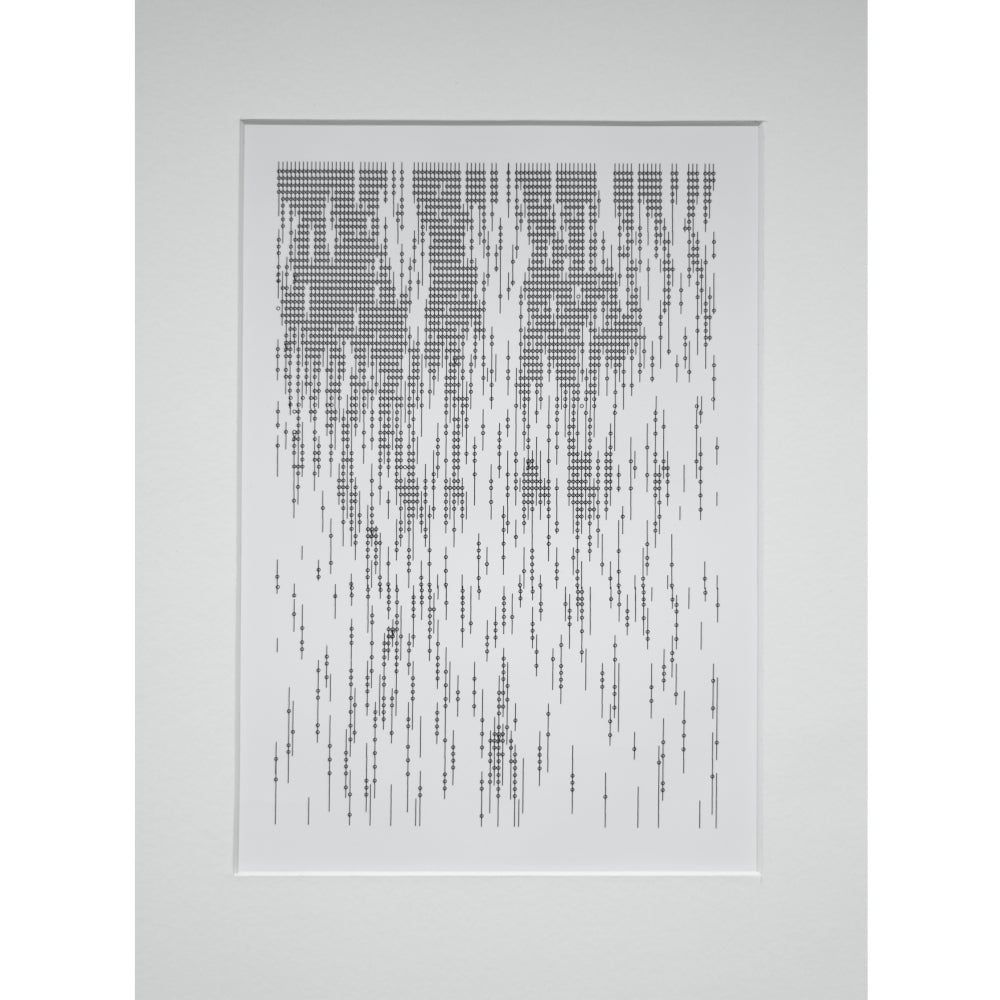 This is not a print, but a unique drawing made by typing each mark (character) on the manual typewriter. Decisions are made at the moment of typing, making each individual outcome that can never be repeated exactly.